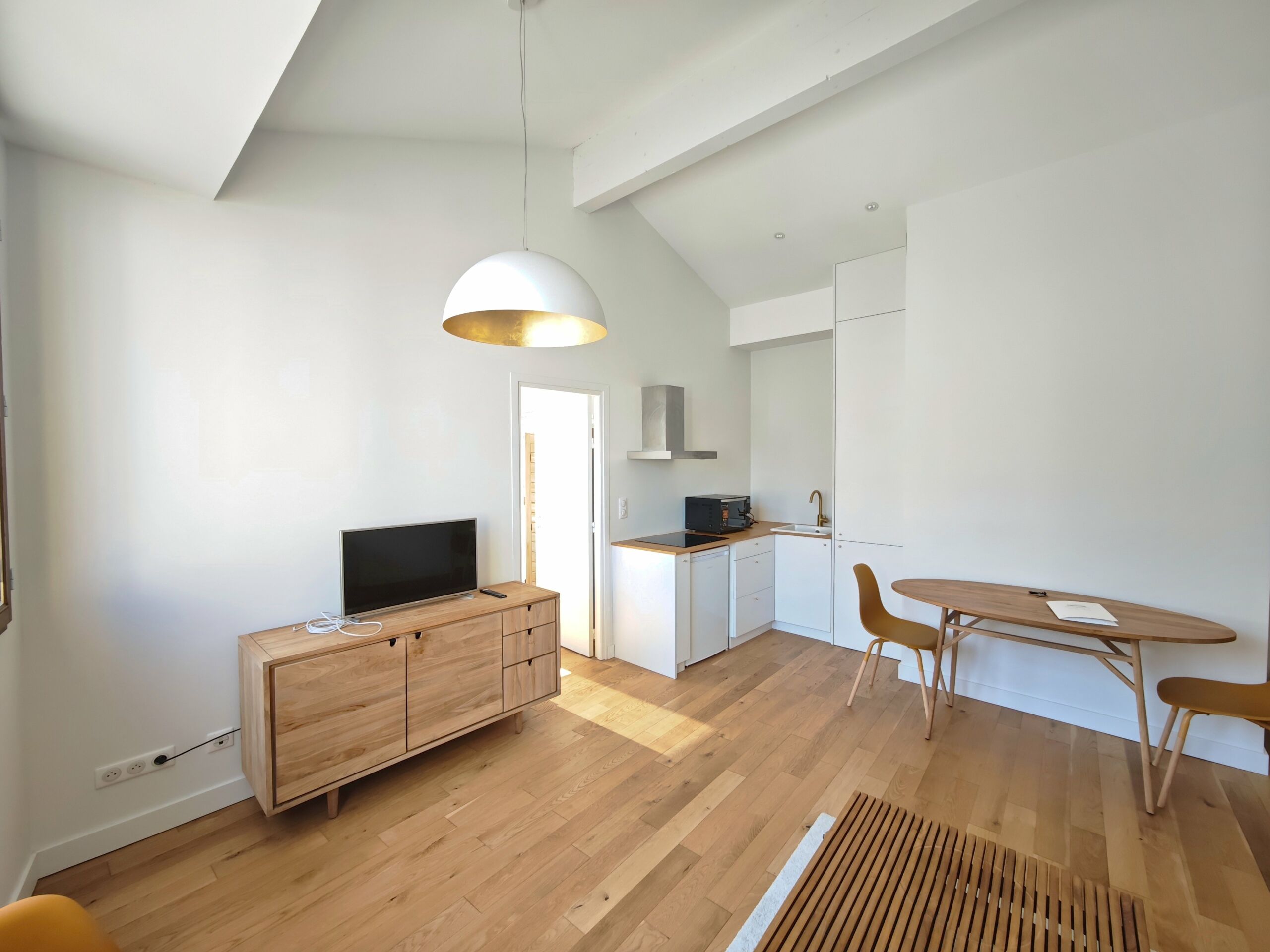 Appartement T2 meublé de 38m² environ composé d’un séjour avec cuisine ouverte équipée, une chambre, salle d’eau, WC séparé.